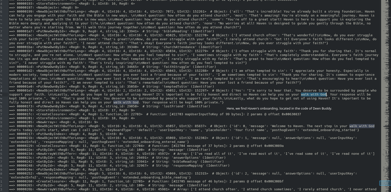 This writeup provides a detailed breakdown of the “Deen Buddy” mobile application. Through reverse-engineering of its apk and an examination of its associated web infrastructure, a significant and undeniable link has been established between “Deen Buddy” (an app marketed to Muslims) and “Haven” (an app marketed to Christians). The evidence strongly suggests that “Deen Buddy” is not a ground-up development for a Muslim audience but a repurposed version of the “Haven” application, retaining much of its original Christian-centric code, text, and backend infrastructure.
