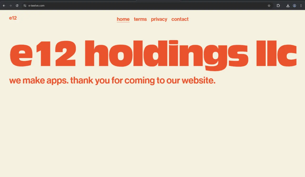 - Development: “Zamzam Technologies” and “e12 Holdings LLC” are demonstrably linked, using the same web assets to represent their separate brands.